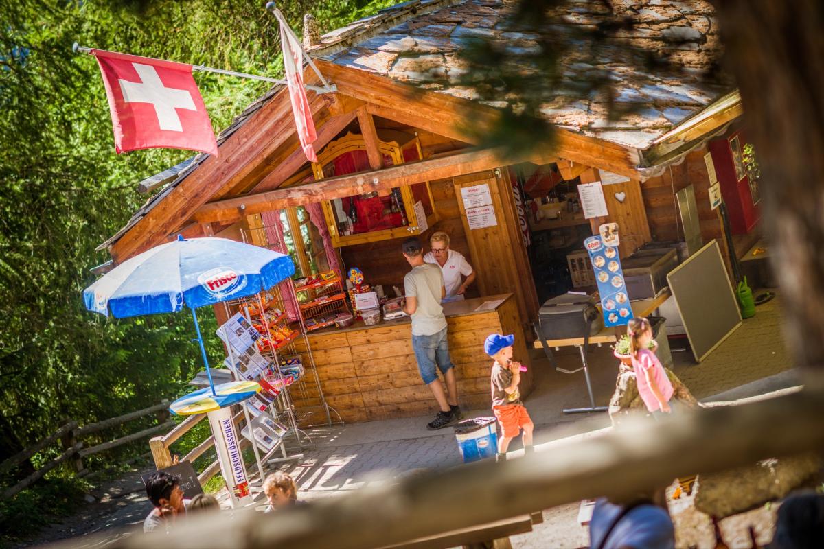 Auch für das leibliche Wohl ist gesorgt. Im Kiosk erhalten Sie Pommes, Chicken Nuggets, Getränke, Eis, Süssigkeiten und selbstgebackenen Kuchen. Fragen Sie nach etwas trockenem Holz und grillieren Sie ihr Essen an einem der schön gelegenen Grillstellen gleich selber. Teller und Besteck bekommen Sie von uns."No more Plastic".